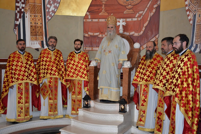 У литургијској проповиједи након читања Јеванђеља, Владика је казао да је Свети Теодор Тирон пострадао за Христа и да су га гонили као што су Христа гонили.
